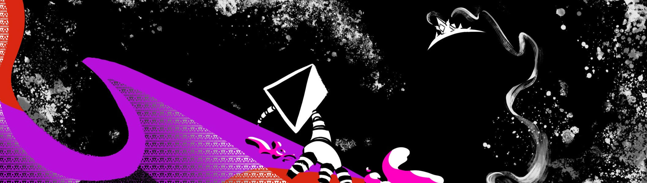 An intricate, hand-lettered "X", formed by a graphic punk character.